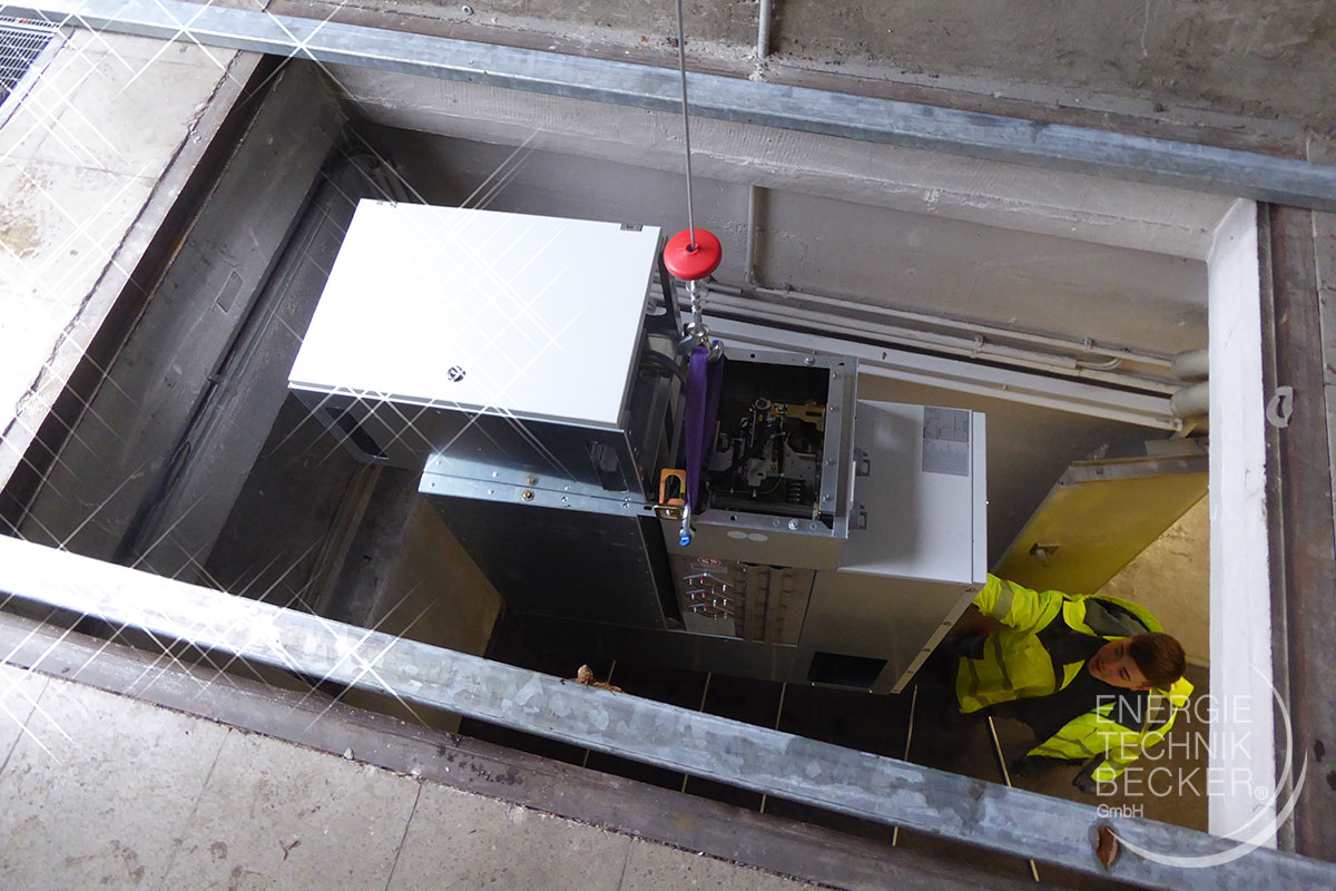 Einbringen eines 20-kV-Schaltfelds durch eine Bodenöffnung in den Schaltraum